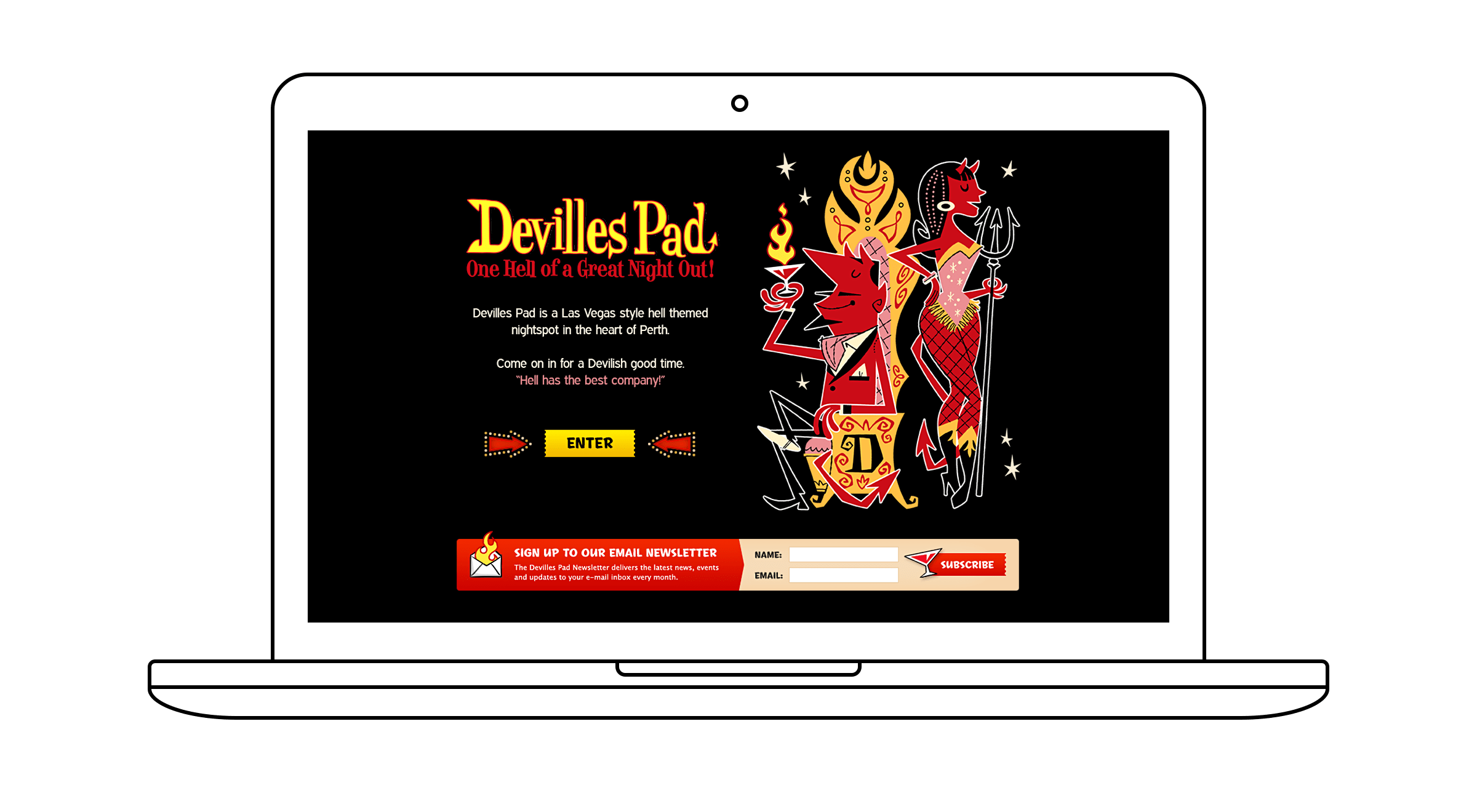 Marvel at the wonder that is Devilles Pad, a Las Vegas style hell themed nightspot where caged dancers gogo to retro rock'n'roll and the dance-floor comes alive with a smoking volcano.